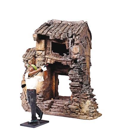 他们搞创作,从来都是自己动手。他们认为,创作就是不断挑战、不断完善的过程,在动手的过程中,很多预料之外的变化会刺激出新的思考和认识。而用窑来烧制作品也是门大学问,已经是雕塑名家的兄弟俩,前几年专程到景德镇学习最传统最正宗的陶瓷烧制技艺。他们烧出了门楼的木头的颜色,烧蒸汽机、拖拉机时把金属的颜色又烧出来了,在烧鞋子时又能把布的质感给烧出来……他们用中国最传统的工匠精神埋头于陶瓷雕塑,从题材、技法上吸收本土的精髓,为“我”所用,走出了一条属于自我的艺术创新之路,惟精惟一,乐此不疲。⑦1